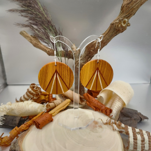 Des boucles d’oreilles de toutes sortes, mettant en valeur des bois avec un veinage unique, ou bien des assemblages de bois précieux mettant en valeur les magnifiques couleurs de la nature.