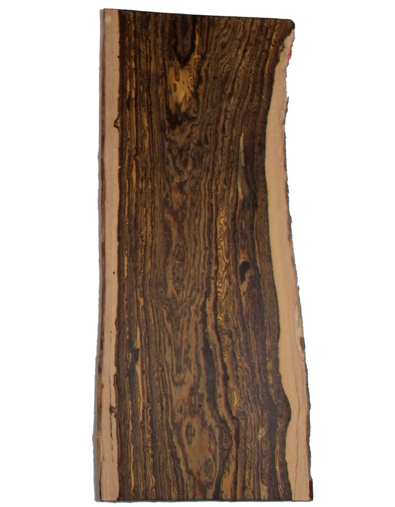 Le zebrano est un bois exotique originaire d’Afrique de l’Ouest. Il doit son nom à ses motifs uniques, qui rappellent les rayures d’un zèbre. Le fond est un brun clair à doré, sur lequel se dessinent de larges bandes sombres, allant du brun foncé au noir. Le zebrano est un bois dur, dense et lourd.